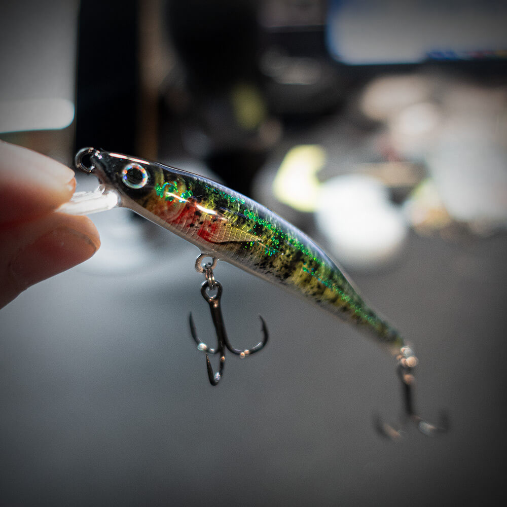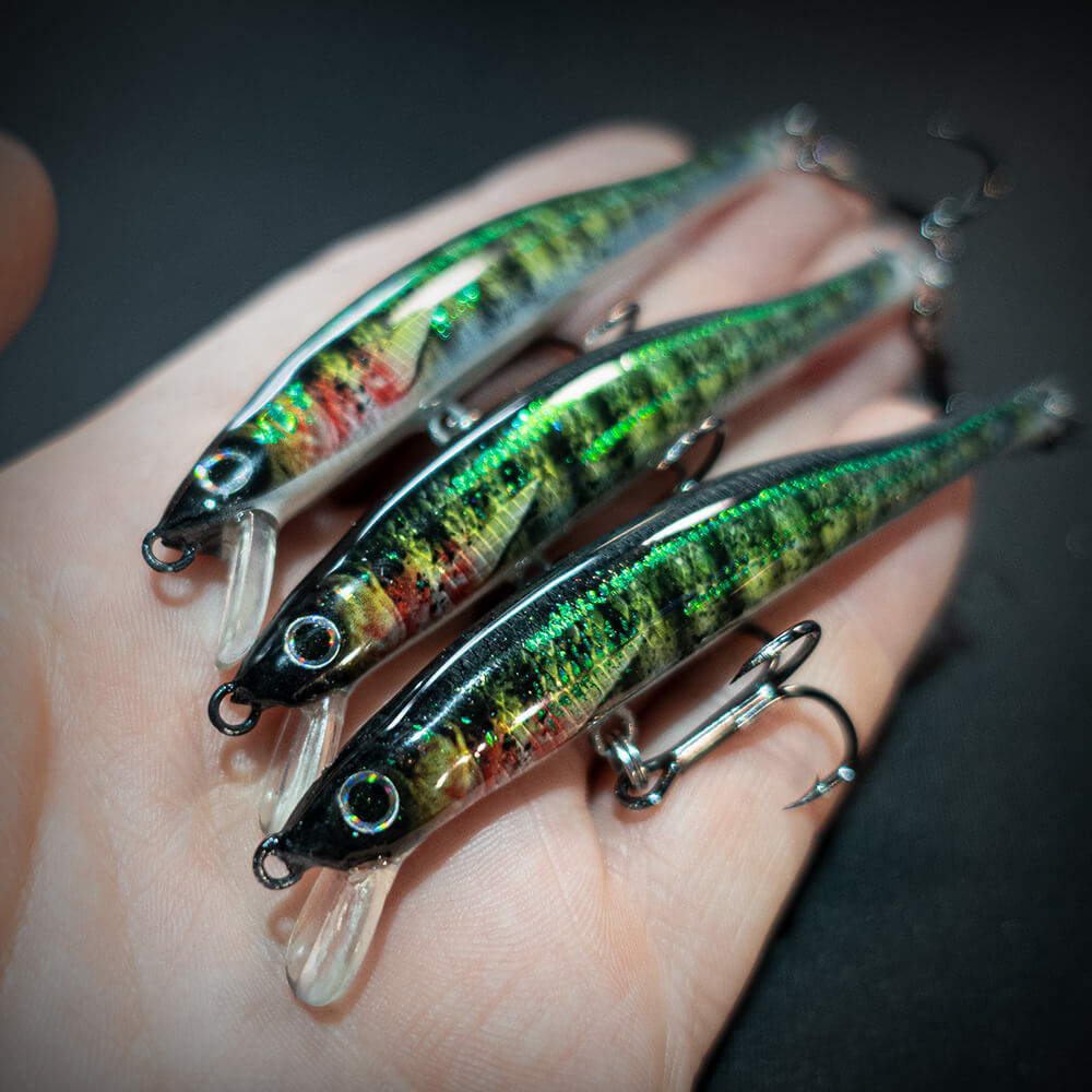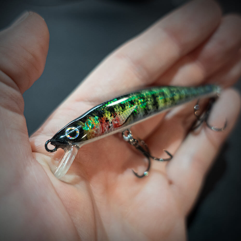 Ein Traum von einem Angelköder! Dieser extrem schlanke und schnippige UL-Köder gibt alles her, was die Design-Kunst im Köderbau zu bieten hat, wie zum Beispiel eine glasklare High-Gloss-Lackierung, ein fotorealistischer Aufdruck und als Finish extrem attraktive Holo-Schuppen. Du kannst den Köder nur exklusiv bei uns im Fischers Gold Onlineshop kaufen, es sind durchweg unikate Einzelstücke!