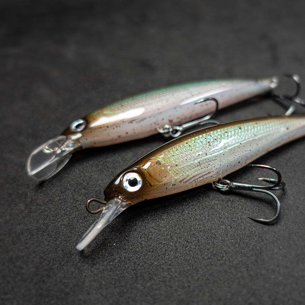 Jeder Köder hat ein holografisches Inlay eingebaut, wodurch beim flanken im Sonnenlicht ein regenbogenartiger Reflex entsteht. Alle Angelköder haben eine Transparenz von ca. 10 – 20%, sind also leicht lichtdurchlässig, wodurch ein besonders „fleischiges“ und naturgetreues Erscheinungsbild unter Wasser entsteht. Alle Modelle sind Flachläufer, floating, je nach Set-Up auch langsam sinkend.
